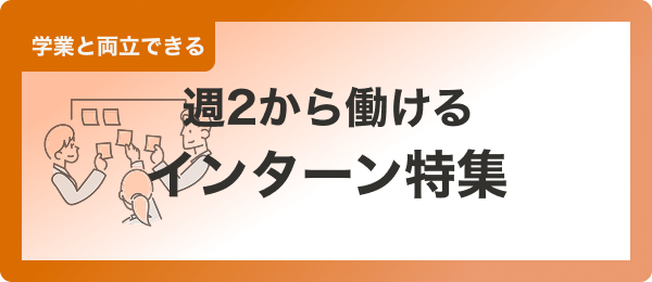 無料で会員登録長期インターンとは、大学生や専門学生が数か月〜1年以上のあいだ、企業で実際の業務を継続的に経験するインターンです。アルバイトのように週2〜3日から参加でき、報酬が支払われることがほとんど。1dayやサマーインターンなどの短期インターンと違い、営業やマーケティング、開発などの実際の事業に関わるため、実践的なスキルや仕事理解を深めることができます。